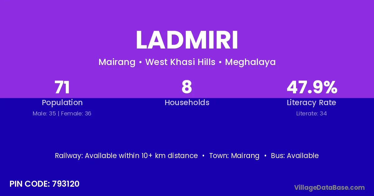According to Census 2011 information, the village code of Ladmiri village is 793120.
