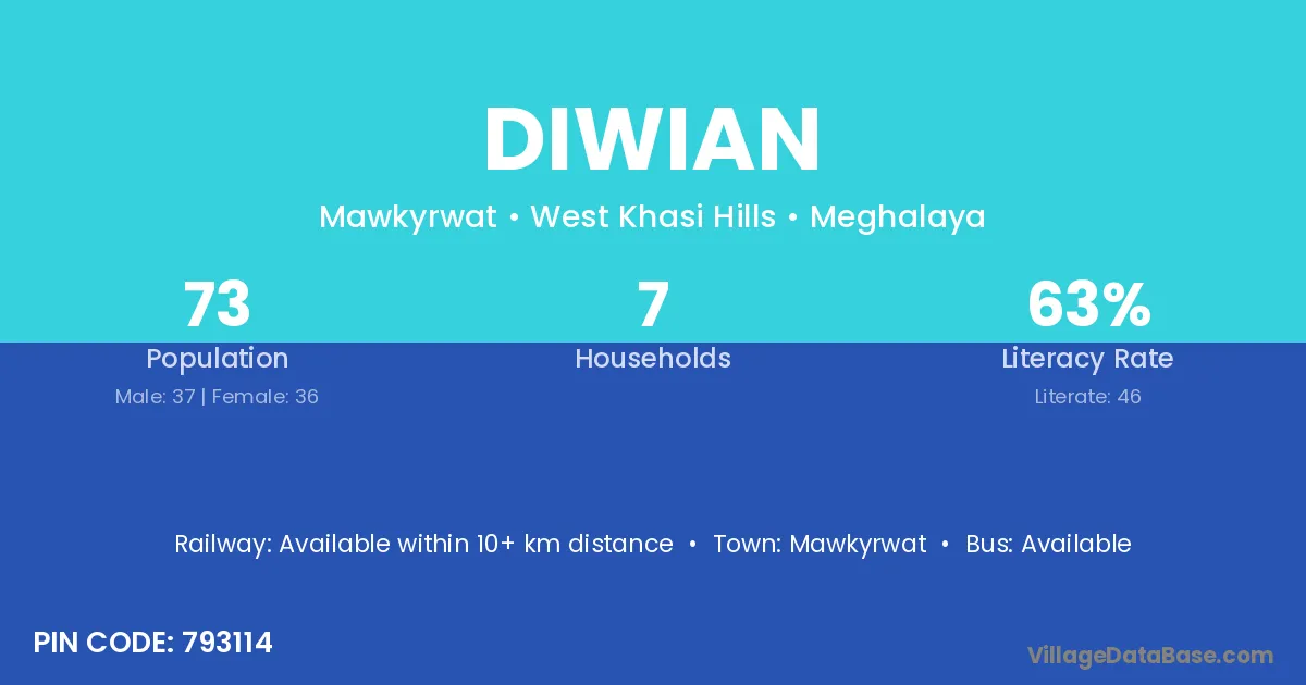 According to Census 2011 information, the village code of Diwian village is 793114.