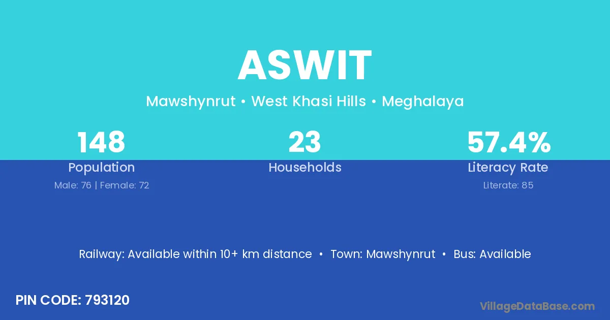 According to Census 2011 information, the village code of Aswit village is 793120.