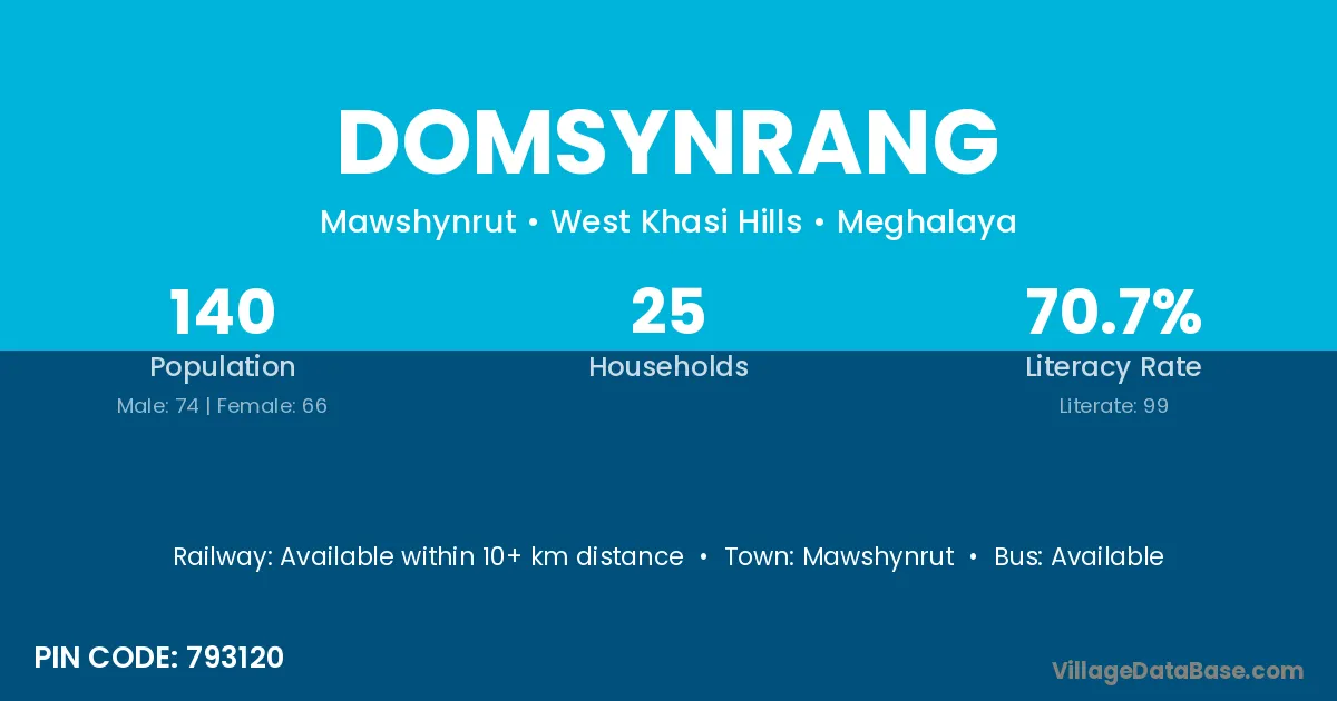 According to Census 2011 information, the village code of Domsynrang village is 793120.