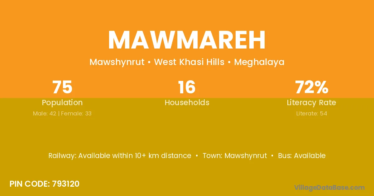 Mawmareh village has a total population of 75 people, of which 42 are males and 33 are females.