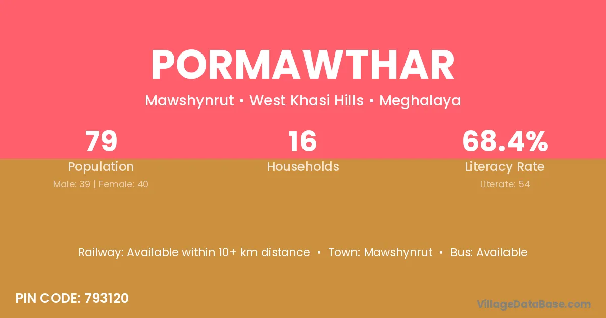 According to Census 2011 information, the village code of Pormawthar village is 793120.