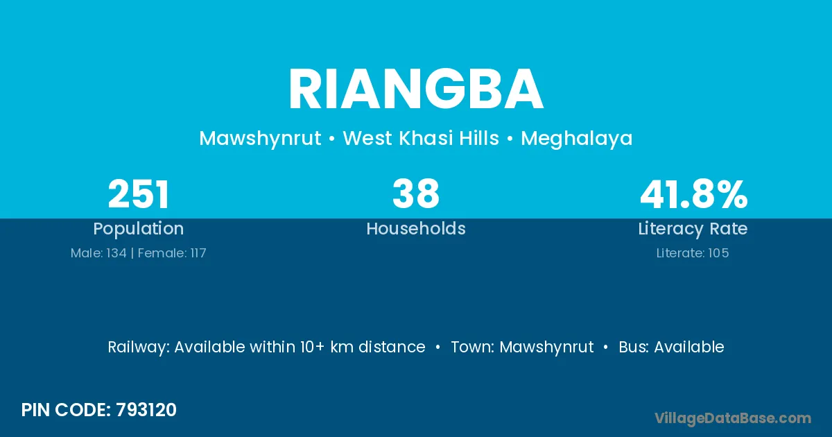 According to Census 2011 information, the village code of Riangba village is 793120.