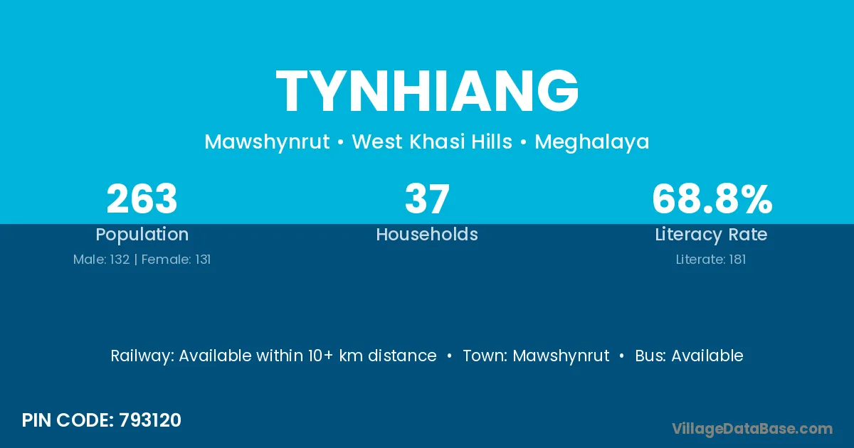 Tynhiang village has a total population of 263 people, of which 132 are males and 131 are females.
