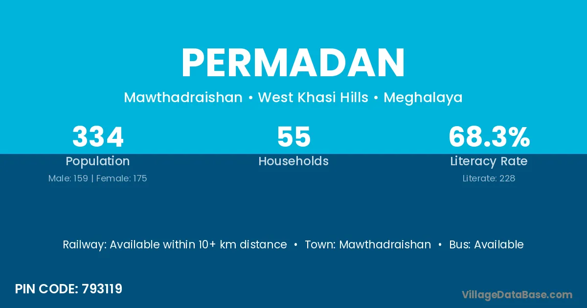 Mawthadraishan is the nearest town to Permadan village for major economic activities
