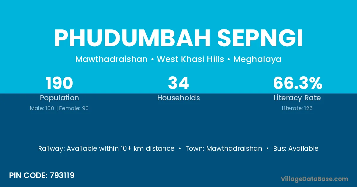 Mawthadraishan is the nearest town to Phudumbah Sepngi village for major economic activities