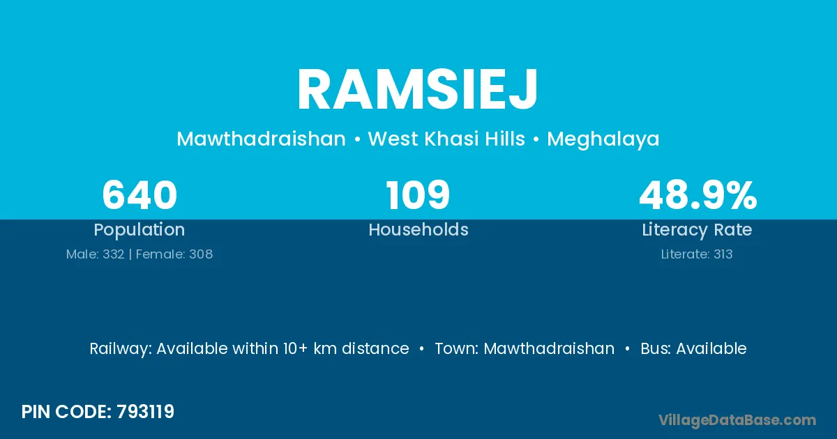 Mawthadraishan is the nearest town to Ramsiej village for major economic activities