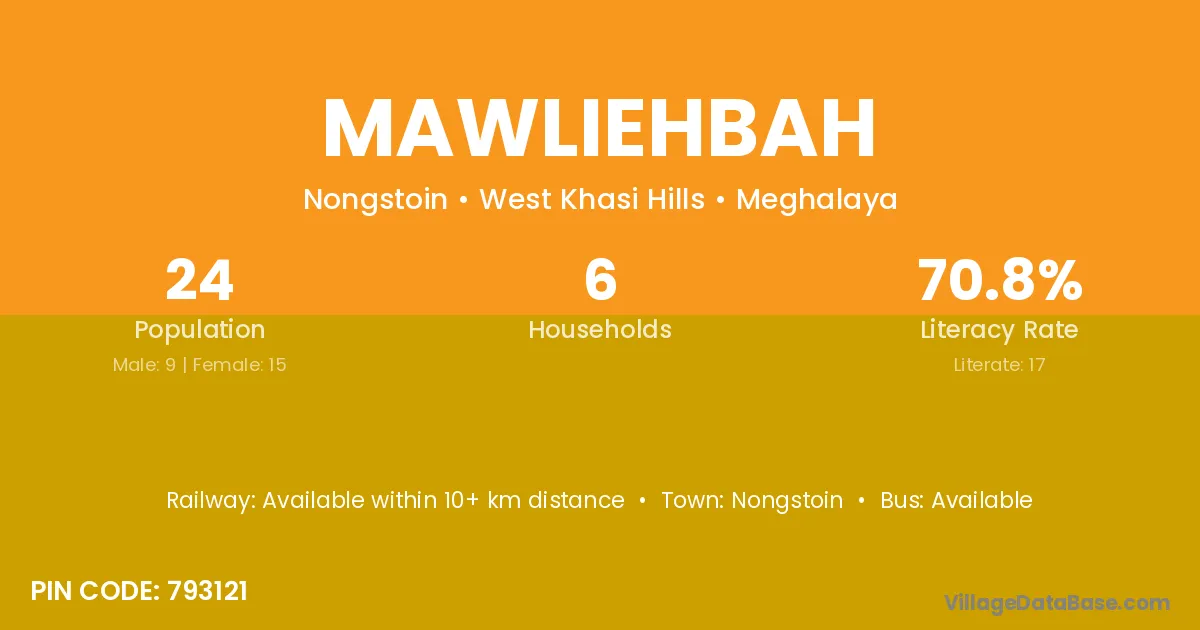 Mawliehbah village has a total population of 24 people, of which 9 are males and 15 are females.