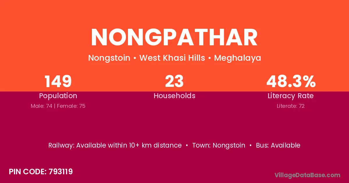 Nongpathar village has a total population of 149 people, of which 74 are males and 75 are females.