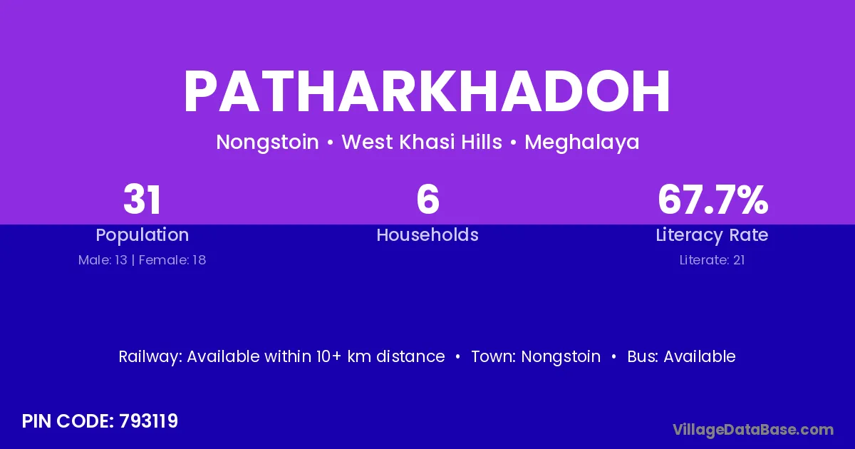 According to Census 2011 information, the village code of Patharkhadoh village is 793119.