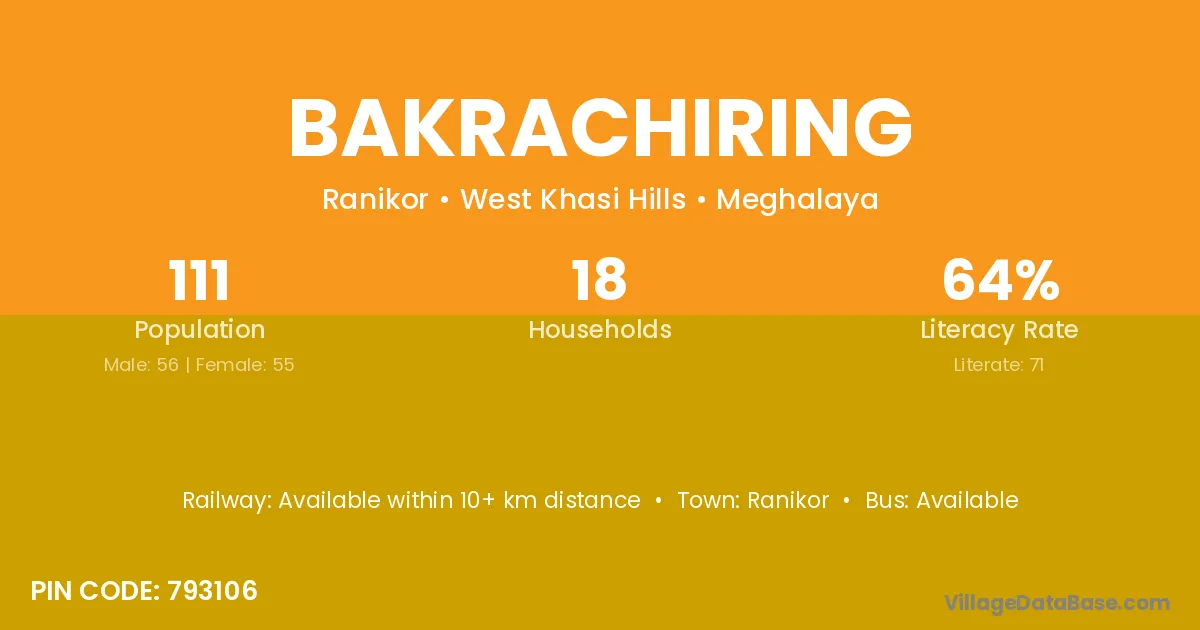 According to Census 2011 information, the village code of Bakrachiring village is 793106.