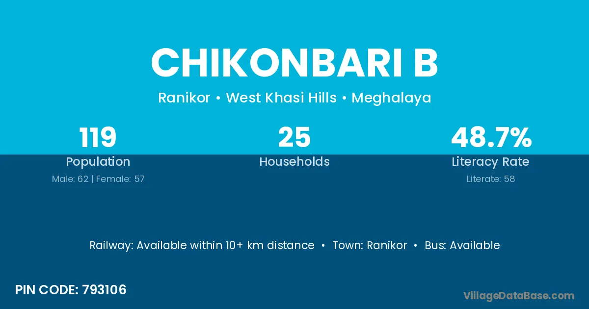 Chikonbari B village has a total population of 119 people, of which 62 are males and 57 are females.
