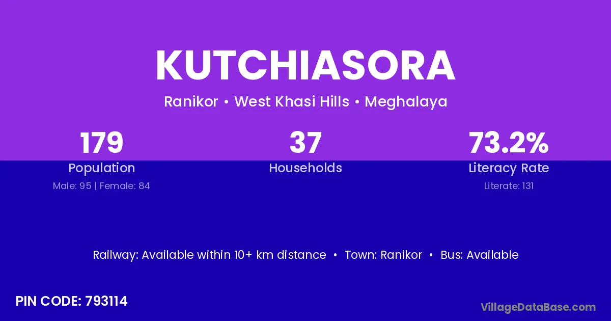 Ranikor is the nearest town to Kutchiasora village for major economic activities