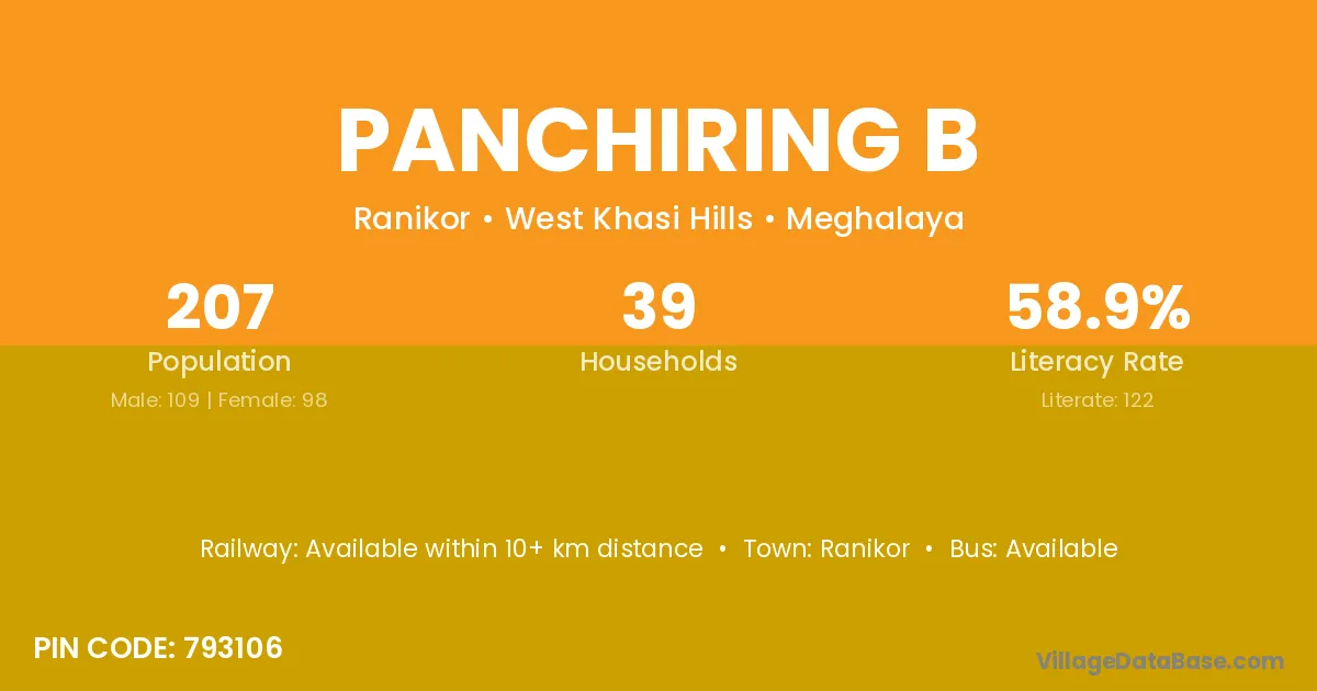 Ranikor is the nearest town to Panchiring B village for major economic activities