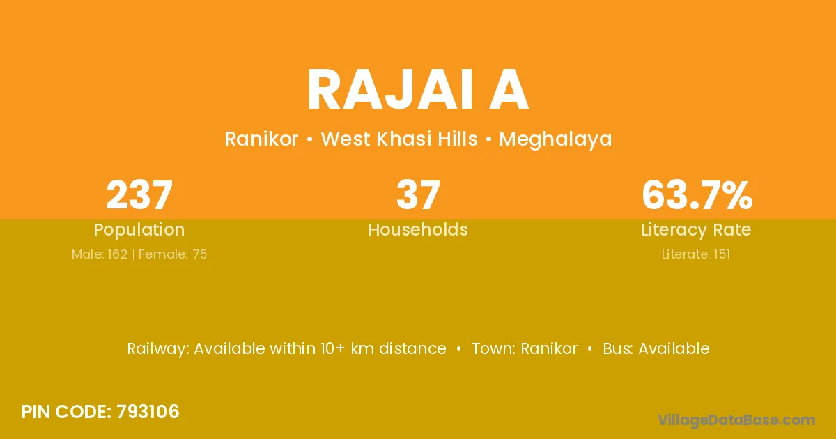 Rajai A village has a total population of 237 people, of which 162 are males and 75 are females.