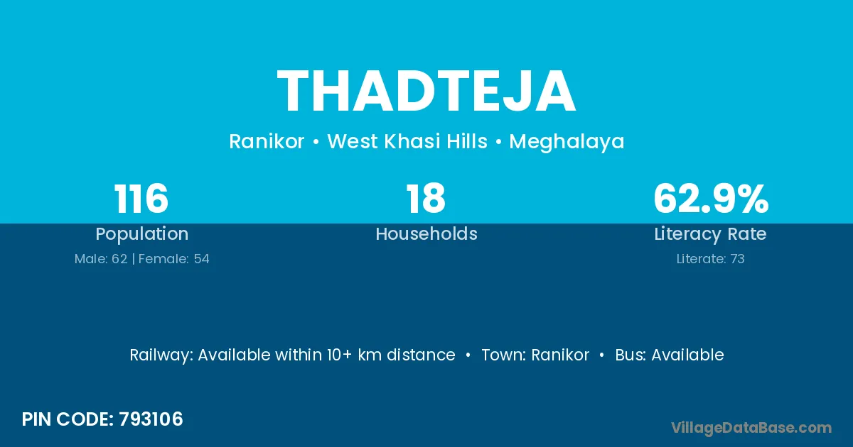 Ranikor is the nearest town to Thadteja village for major economic activities