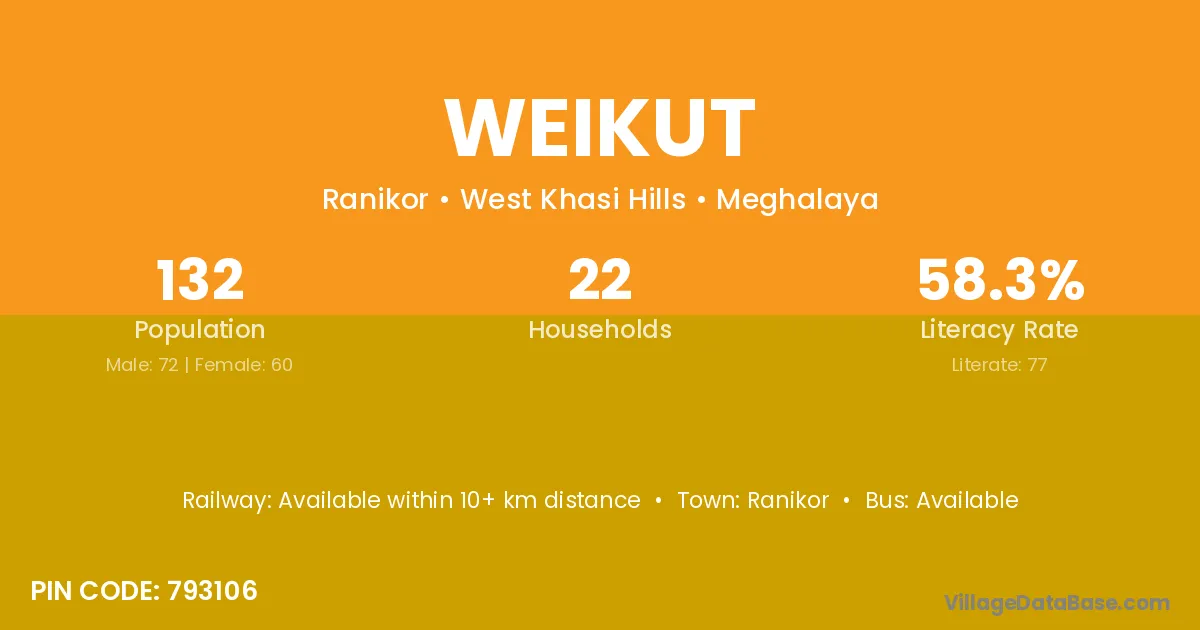 Ranikor is the nearest town to Weikut village for major economic activities