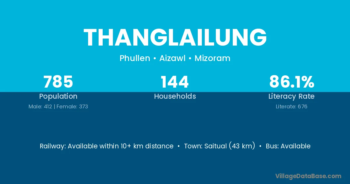 Saitual (43 km) is the nearest town to Thanglailung village for major economic activities and is located approximately 43 km away.