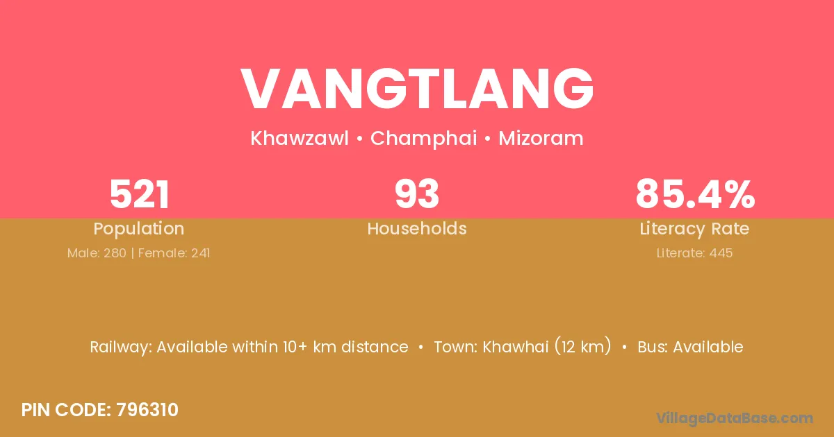 According to Census 2011 information, the village code of Vangtlang village is 796310.