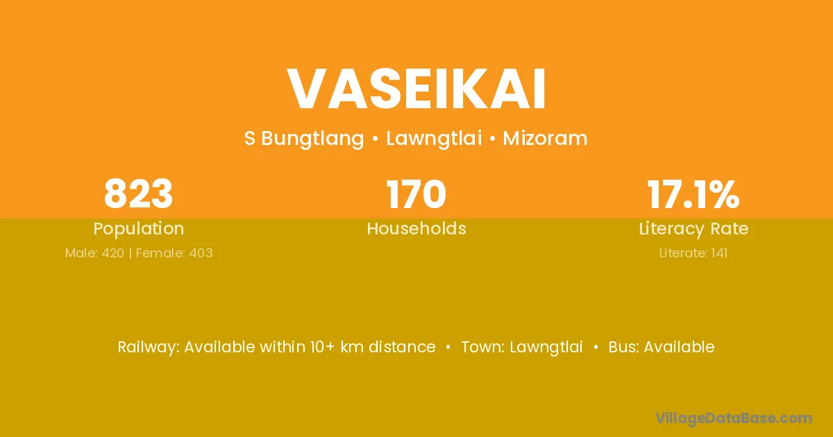 Vaseikai village has a total population of 823 people, of which 420 are males and 403 are females.