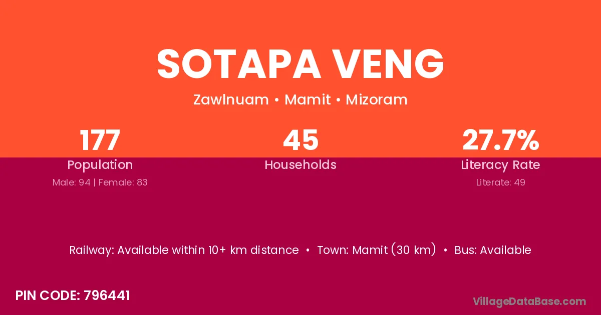 Sotapa Veng village is located in the Zawlnuam Subdivision of the Mamit district in Mizoram .