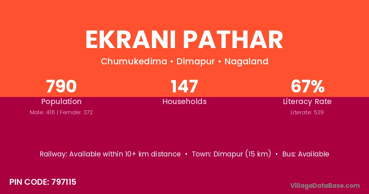 Dimapur (15 km) is the nearest town to Ekrani Pathar village for major economic activities and is located approximately 15 km away.