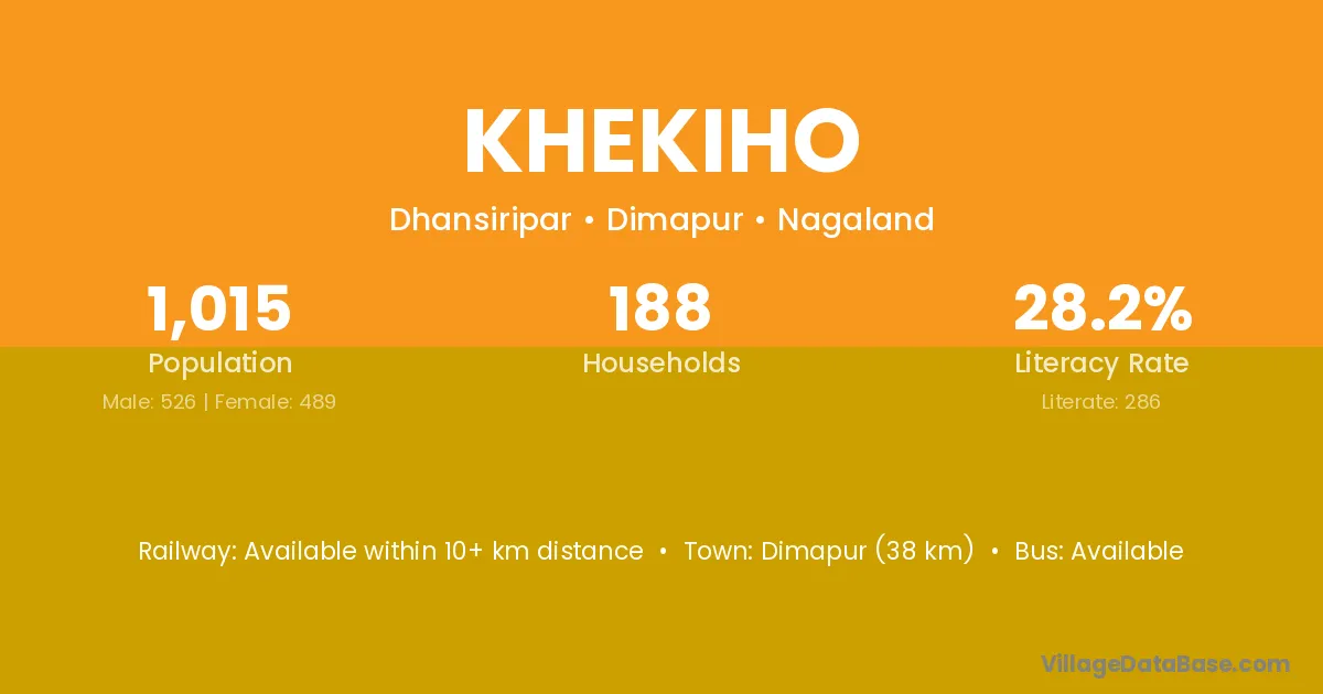 Khekiho village has a total population of 1,015 people, of which 526 are males and 489 are females.
