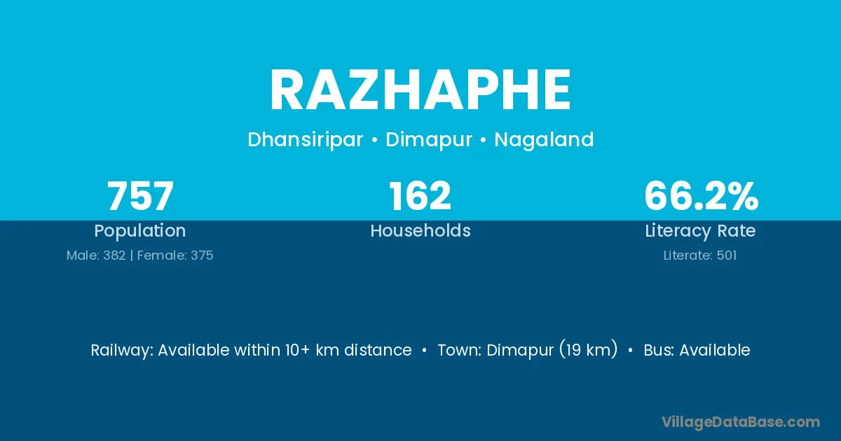 Razhaphe village has a total population of 757 people, of which 382 are males and 375 are females.