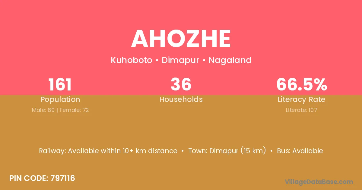 Dimapur (15 km) is the nearest town to Ahozhe village for major economic activities and is located approximately 15 km away.