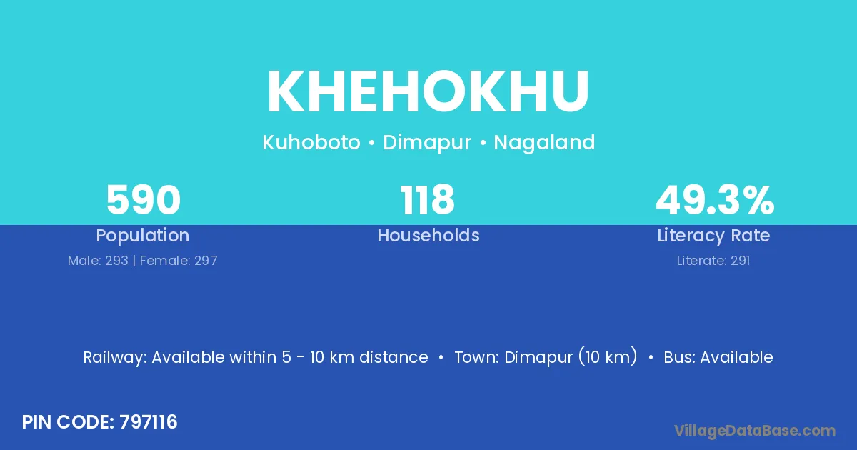 Khehokhu village has a total population of 590 people, of which 293 are males and 297 are females.