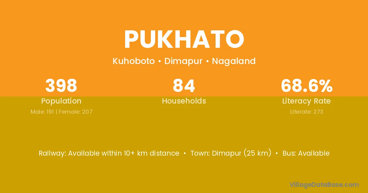 Dimapur (25 km) is the nearest town to Pukhato village for major economic activities and is located approximately 25 km away.