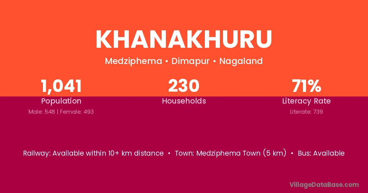 Medziphema Town (5 km) is the nearest town to Khanakhuru village for major economic activities and is located approximately 5 km away.