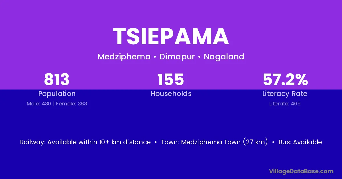 Medziphema Town (27 km) is the nearest town to Tsiepama village for major economic activities and is located approximately 27 km away.