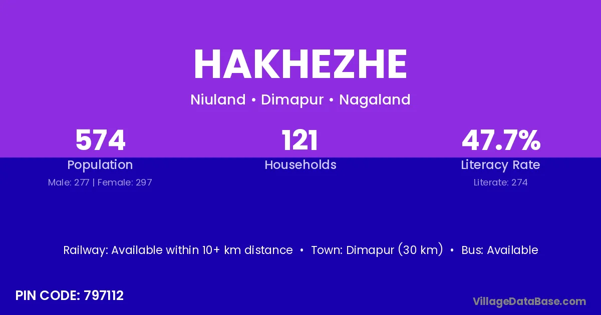 Dimapur (30 km) is the nearest town to Hakhezhe village for major economic activities and is located approximately 30 km away.