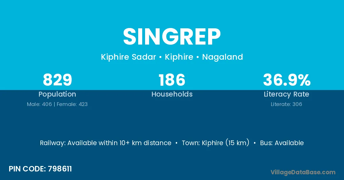 Kiphire (15 km) is the nearest town to Singrep village for major economic activities and is located approximately 15 km away.