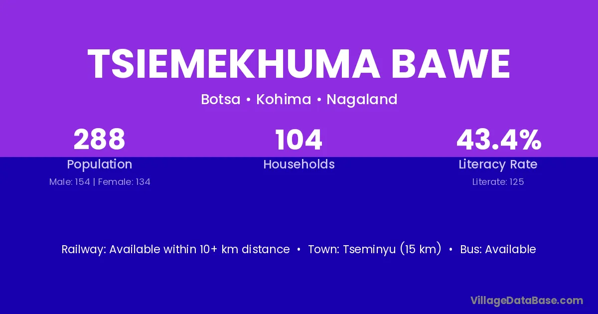 Tsiemekhuma Bawe village has a total population of 288 people, of which 154 are males and 134 are females.