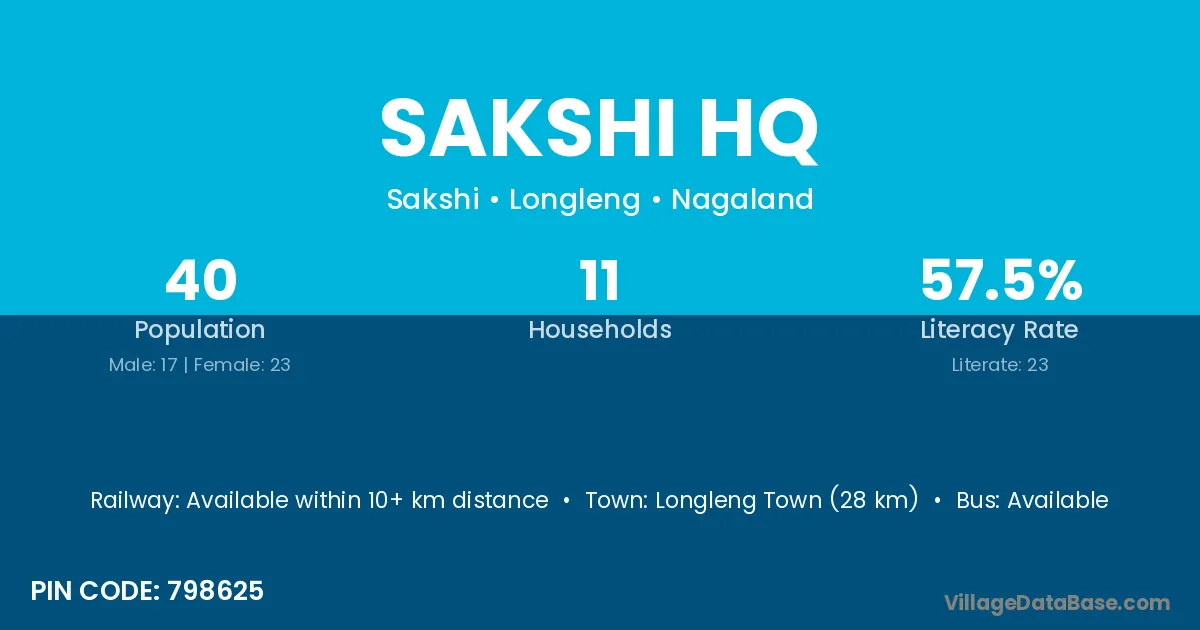 Longleng Town (28 km) is the nearest town to Sakshi Hq village for major economic activities and is located approximately 28 km away.
