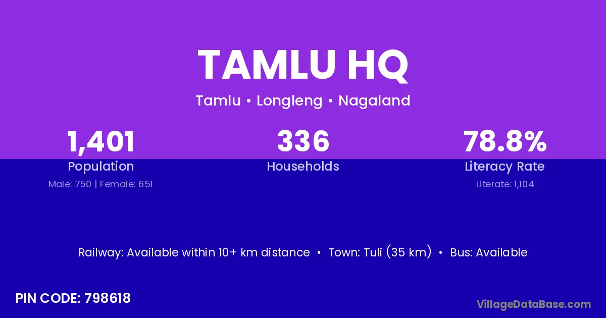 Tamlu Hq village has a total population of 1,401 people, of which 750 are males and 651 are females.