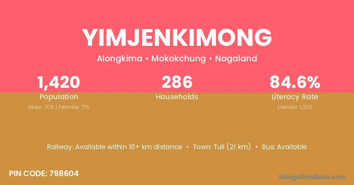 Yimjenkimong village has a total population of 1,420 people, of which 705 are males and 715 are females.