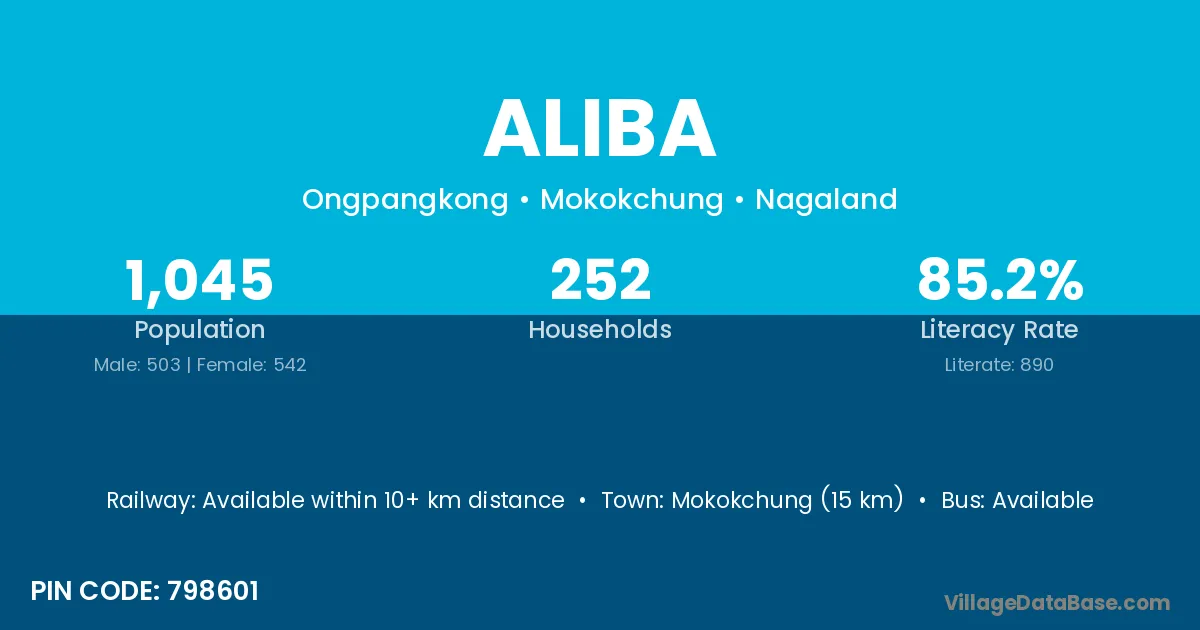 Mokokchung (15 km) is the nearest town to Aliba village for major economic activities and is located approximately 15 km away.