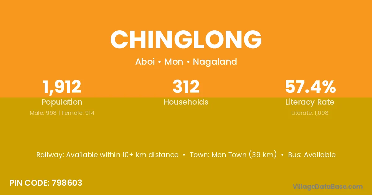 Mon Town (39 km) is the nearest town to Chinglong village for major economic activities and is located approximately 39 km away.