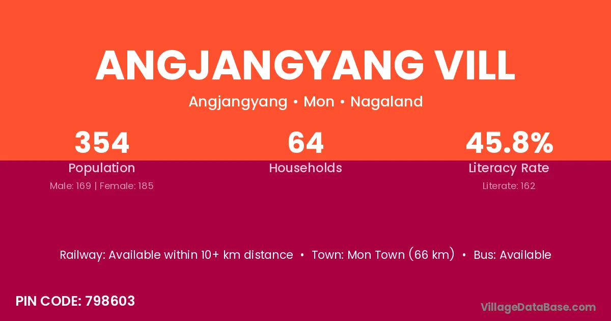 Angjangyang Vill village has a total population of 354 people, of which 169 are males and 185 are females.