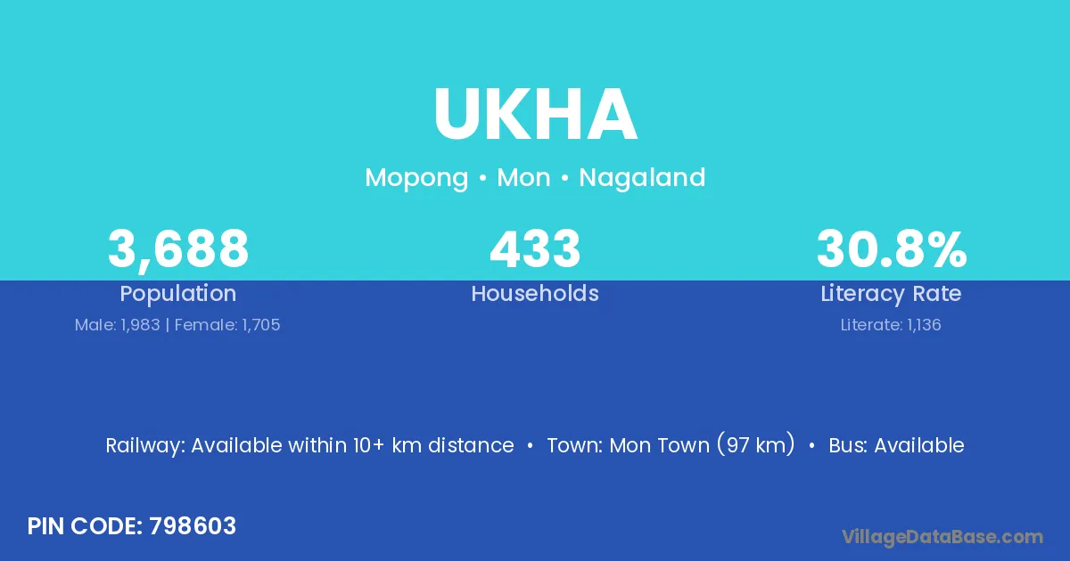 Mon Town (97 km) is the nearest town to Ukha village for major economic activities and is located approximately 97 km away.