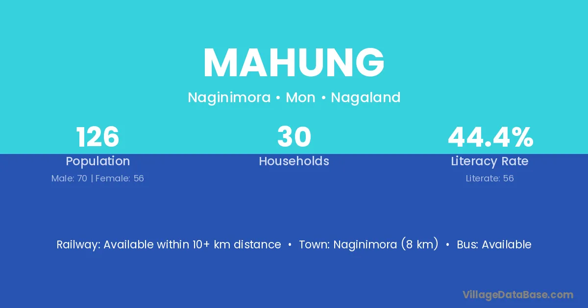 Naginimora (8 km) is the nearest town to Mahung village for major economic activities and is located approximately 8 km away.