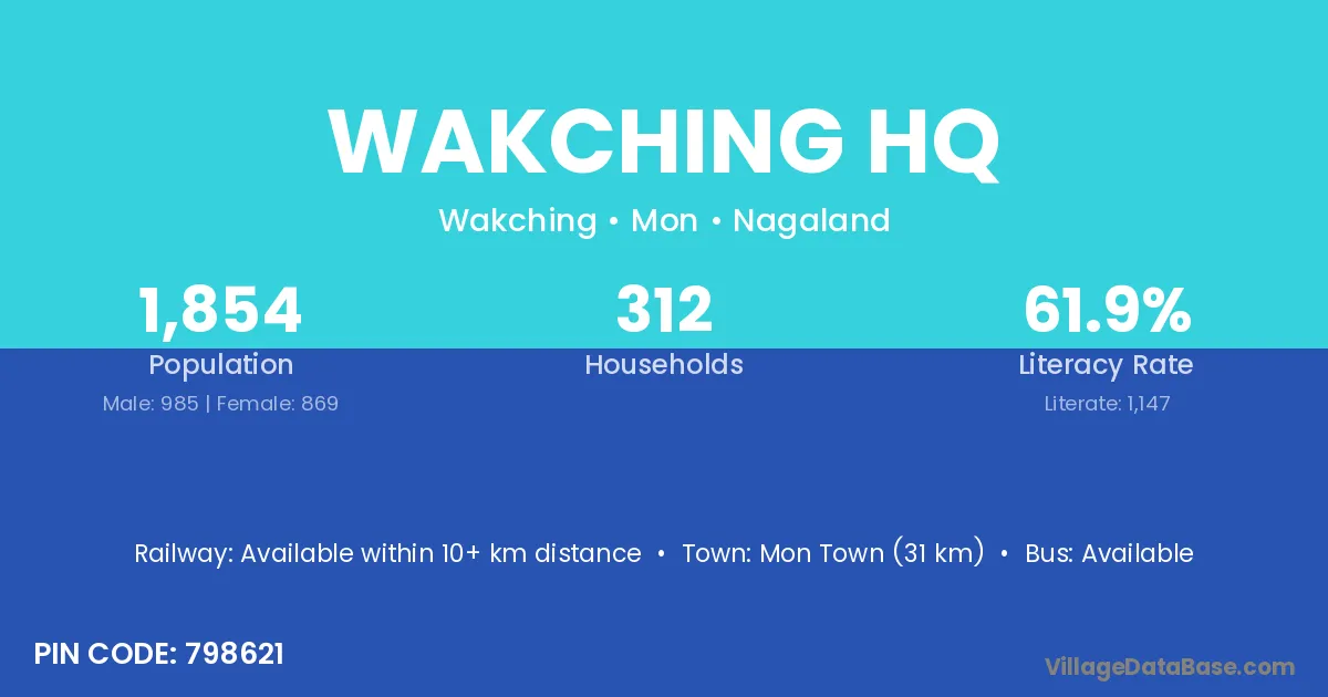 Wakching Hq village has a total population of 1,854 people, of which 985 are males and 869 are females.