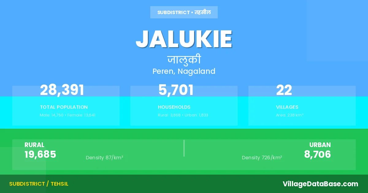 Jalukie is a town and Circle in the Peren district of the Nagaland. In India, a Circle is a subdivision of a district responsible for the administration and revenue collection of a specific area within the district. Circles play a crucial role in the local governance structure, contributing significantly to the development and administration of their communities.