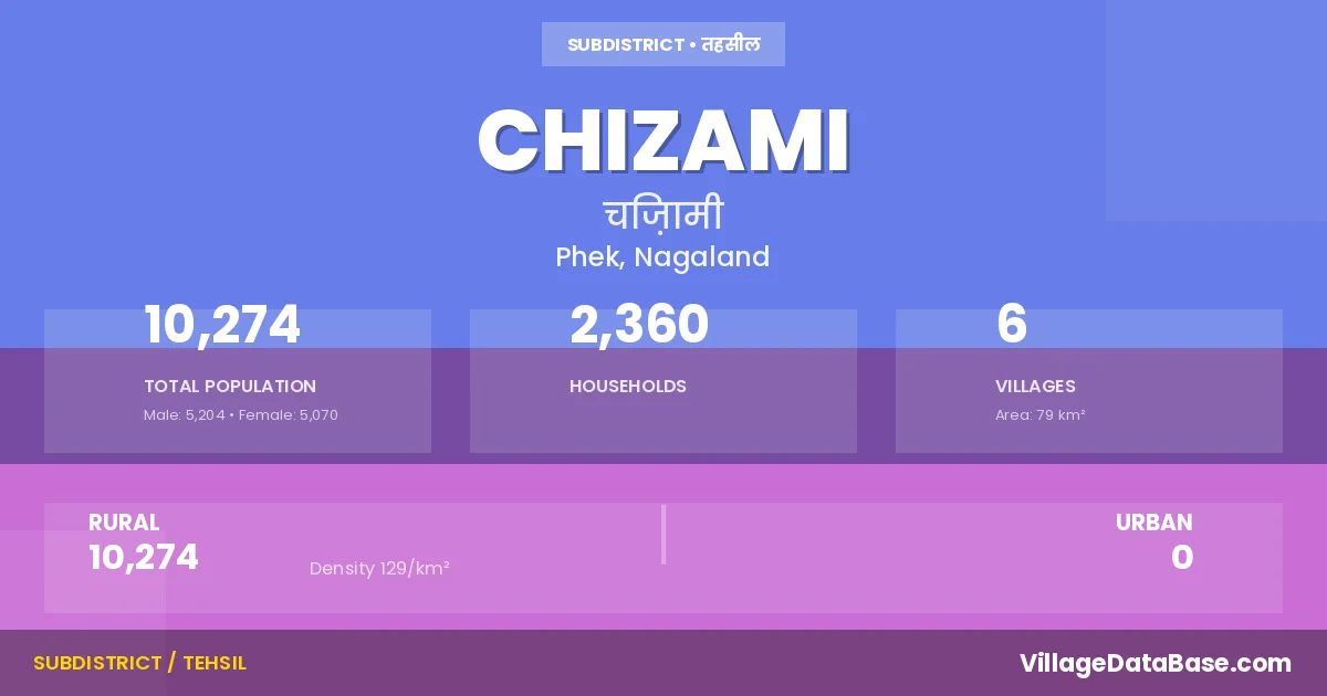 Chizami Circle comprises about 6 villages. Below is a list of these villages along with information about their respective gram panchayats and the nearest town: