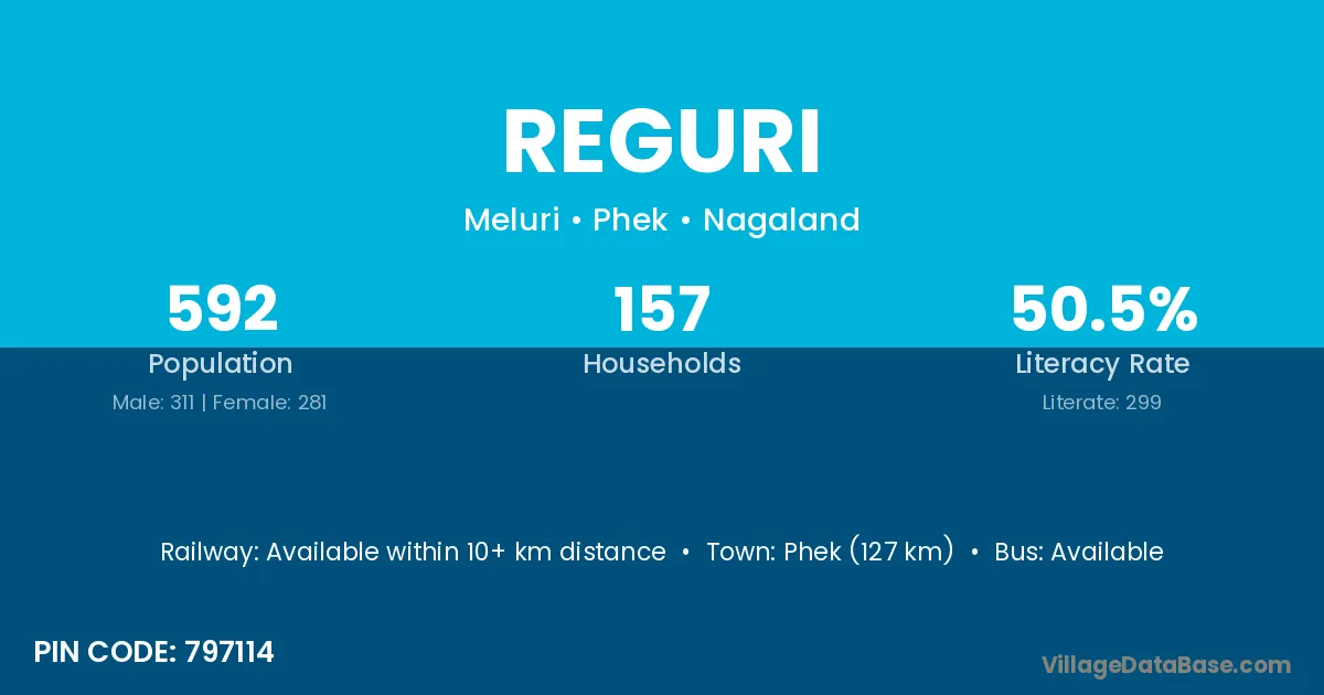 Phek (127 km) is the nearest town to Reguri village for major economic activities and is located approximately 127 km away.