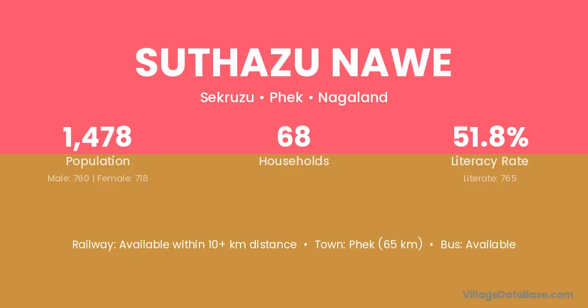 Suthazu Nawe village has a total population of 1,478 people, of which 760 are males and 718 are females.