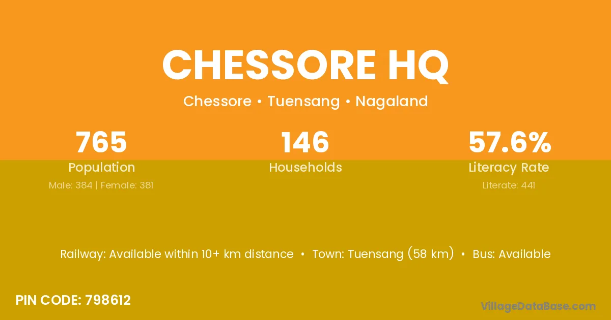 According to Census 2011 information, the village code of Chessore Hq village is 798612.